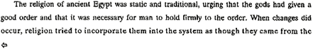 جاء فيه : «مملكة مصر كانت في ذلك العهد (عهد الأسرتين التاسعة عشر والعشرين) تدار أمورها على كاهل الديانة. وكانت تحكم البلاد آلهة على وفق العقائد الرسمية السائدة. وهؤلاء الآلهة مثل : أمان تهى بزپاى ميليوپولس.